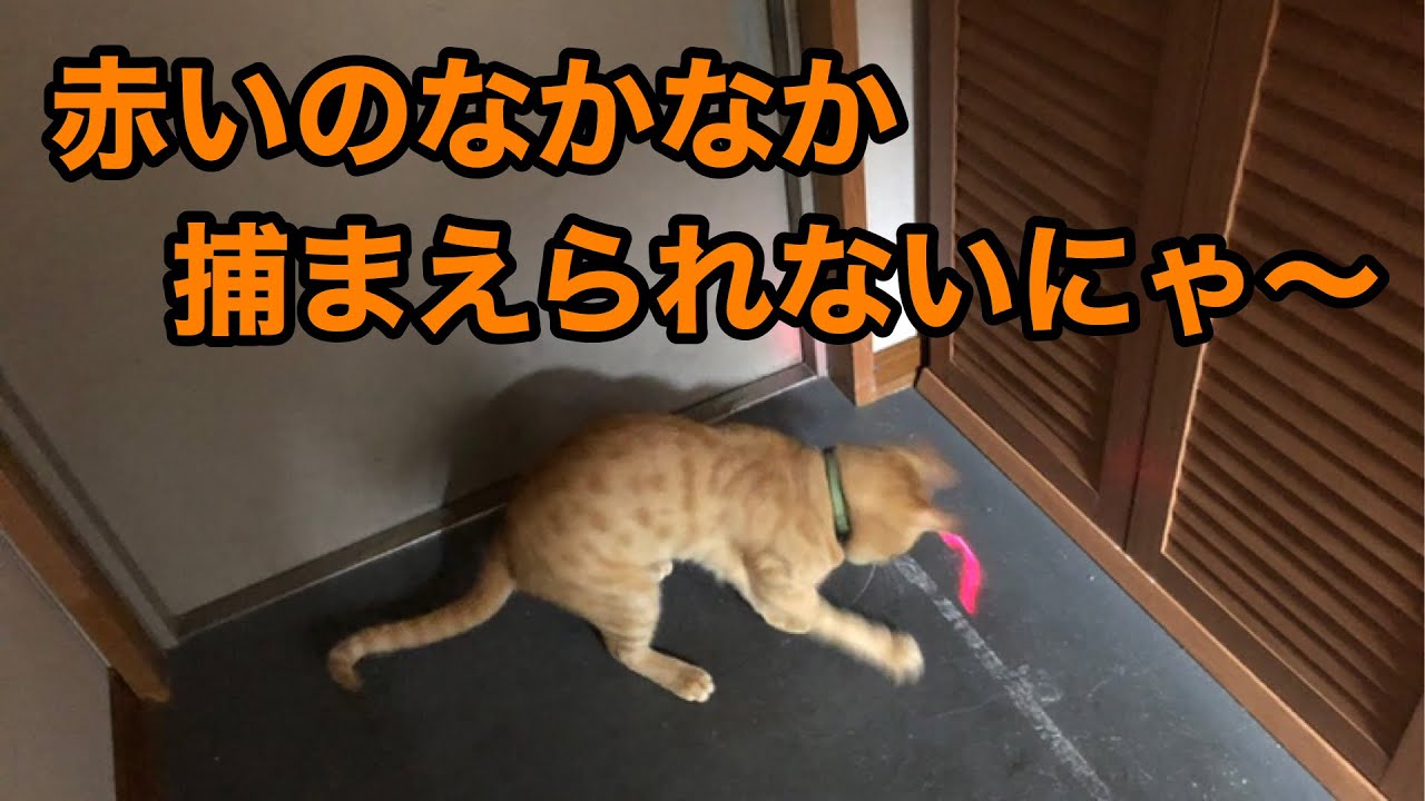 おもしろいねこ】赤いライトを必死に捕まえようとするはる - YouTube